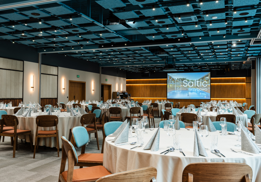 W Saltic Resort & SPA czeka na Ciebie nowoczesna przestrzeń konferencyjna – cztery klimatyzowane sale od 70 do 80 m², które można dowolnie łączyć, tworząc nawet 300 m² powierzchni na spotkania biznesowe, szkolenia, warsztaty i bankiety.